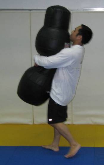 И последнее упражнение, которое развивает анаэробную выносливость всего тела и дополнительно укрепляет верх спины. Мои клиенты ходят (или даже бегают) с 50-килограммовым мешком одну минуту. Это прекрасное дополнение к тренировочной программе любого бойца. Только сохраняйте правильную осанку при выполнении.