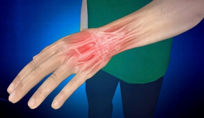 - локальная гипертермия и гиперемия кожи. Кожные покровы в области запястья становятся красными и горячими на ощупь;