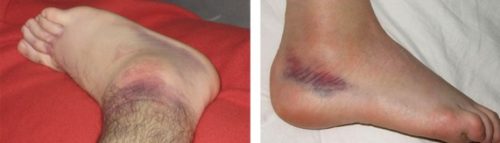 - После разрыва связок голеностопа наблюдается отек тканей в месте травмы. Голеностоп сильно распухает, обретая «слоновый» вид.