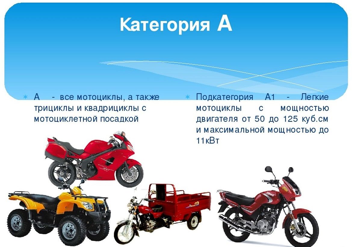 При наличии прав категории «А1» человек может беспрепятственно управлять мотоциклами с объёмом двигателя 50, 75, 100 и 125 см³.