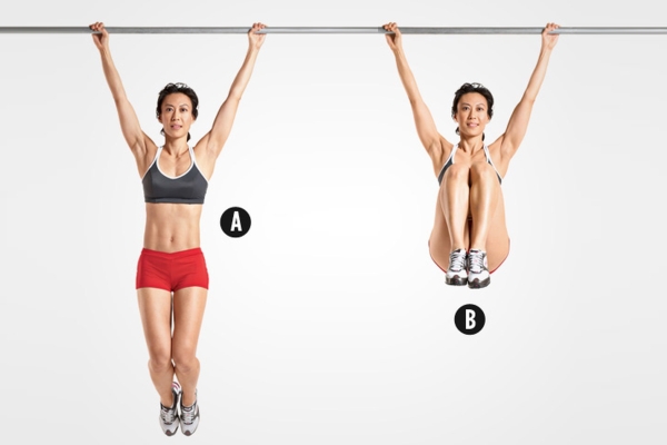 Данное упражнение подходит для начинающих и является отличным стартом. Повисните на перекладине и подтяните согнутые в коленях ноги к подбородку. Задержитесь на несколько секунд, фиксируя колени на уровне подбородка. Если поднимать обе ноги одновременно сложно, выполняйте подъемы поочередно. Рекомендуется делать 10 повторений в 3 подходах. Эти подъемы укрепляют мышцы нижней части пресса и спины.