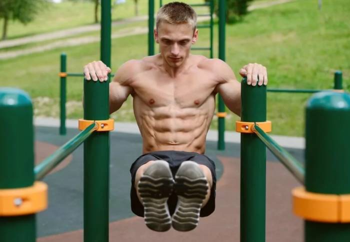 Очень полезны упражнения на брусьях. Они помогают развитию мышц нижнего пресса и живота. Также очень хорошо развивают мышцы рук. Турник и брусья, расположенные во дворах, очень полезны в плане занятий на свежем воздухе.