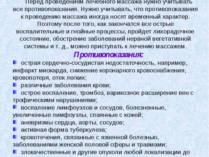 - Заболевания ССС в период обострения, курс массажа рекомендуют, только, после 6 месяцев.