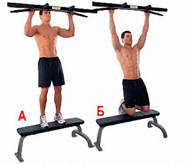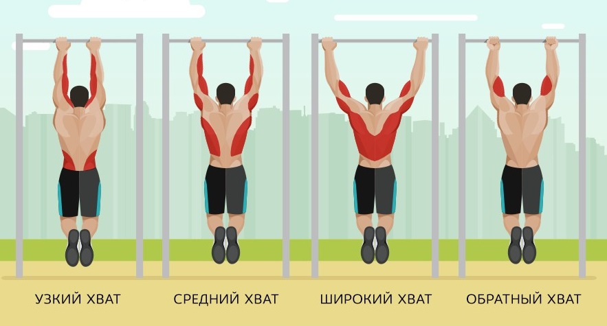 Изменение положения рук на турнике позволяет варьировать нагрузку: