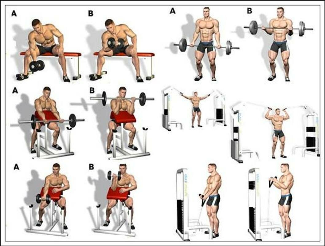 - руки (бицепсы, трицепсы, сгибатели локтей и запястий);