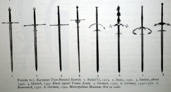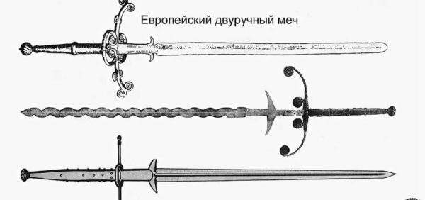 Существует множество видов двуручного меча, и неподготовленному человеку сложно заметить их отличия. В целом, форма и геометрические характеристики у них схожи.