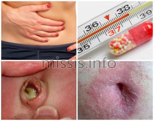 Пупочные свищи у младенцев сопровождаются теми же симптомами, что и у взрослых: