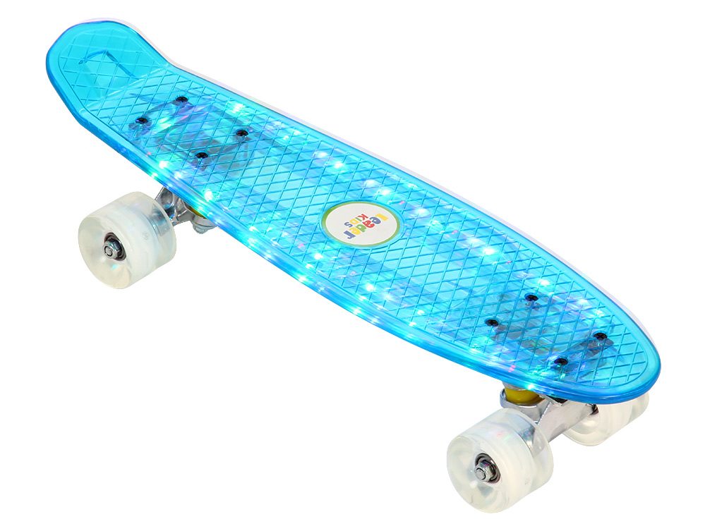 - Leader Kids JC-001. Скейт китайского производителя, специализирующегося на выпуске детских групп товаров. Такому подарку будет рада и девочка 10 лет, и мальчик младшего возраста. У изделия насыщенная расцветка, эргономичные линии, светящие колеса.