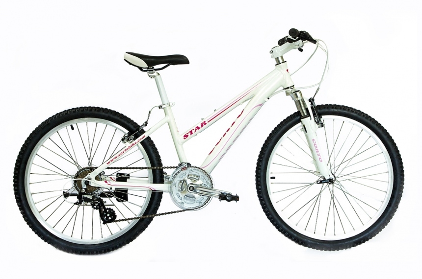 - Corto Star. Рассчитан на подростковый возраст и рост. Конструкция состоит из алюминиевой рамы, шатунов, амортизационной вилки. Велосипед прочный, надежный, диметр колес – 24 дюйма, крылья и багажник отсутствуют.