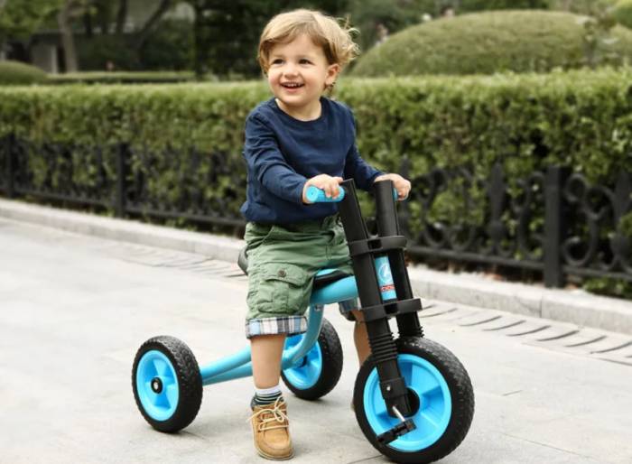 Малышам в возрасте от 1 до 3 лет обычно очень трудно сдвинуть с места велосипед с диаметром колес 12 дюймов. Идеальным решением станут трехколесные модели. В связи с тем, что самые маленькие райдеры еще не могут преодолевать большие расстояния самостоятельно, многие конструкции дополняют родительской ручкой. С ее помощью можно подталкивать транспорт под горку или регулировать движение.
