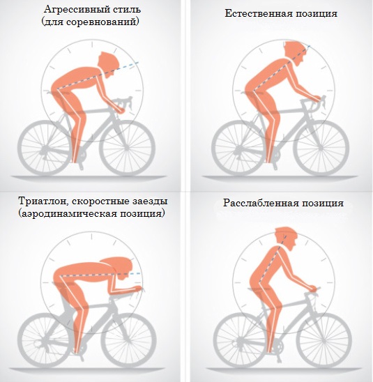 | Тип велосипеда | Положение тела | Нюансы посадки |