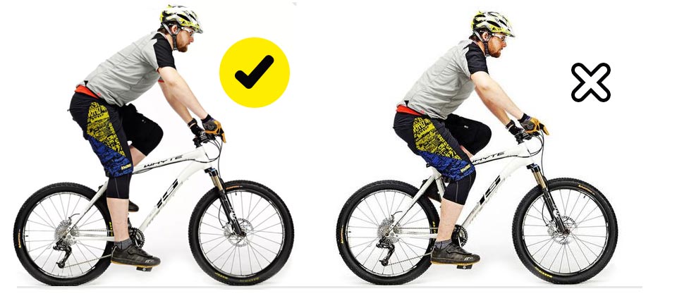 Удобная посадка на горном велосипеде обеспечивает безопасность во время поездки. Седло должно быть установлено горизонтально; неправильная установка может вызвать боли в руках и животе, а также сделать поездку некомфортной. Вес райдера должен равномерно распределяться между колесами, что облегчает преодоление препятствий. Положение тела зависит от маневров: при спусках спина отклоняется назад, при подъемах — вперед.