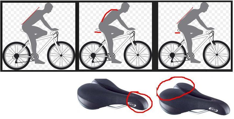 - Положение не должно вызывать дискомфорта в области таза. Кожаное седло лучше всего адаптируется к анатомии велосипедиста.