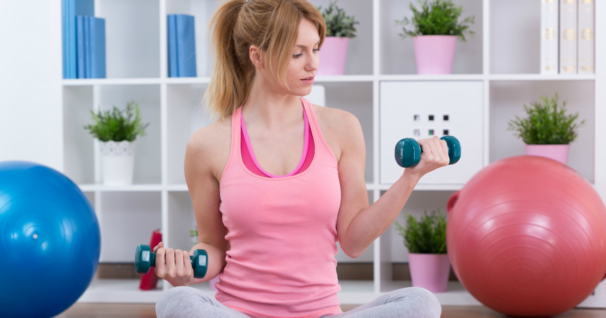 Новички могут заменить гантели на бутылки с водой и по мере увеличения силы переходить на более тяжелые снаряды.