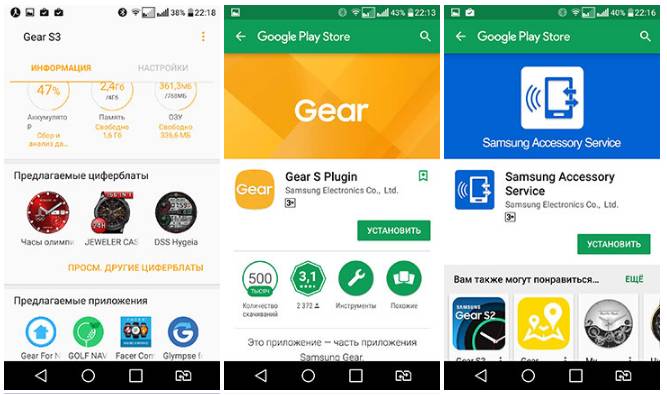 Чтобы синхронизировать телефон с умными часами, нужно скачать мобильное приложение под названием Galaxy Wearable или Samsung Gear. При использовании гаджета на базе Android с этой целью нужно зайти в Play Market, а iOS App Store. После того как приложение будет установлено, нужно выполнить следующие действия: