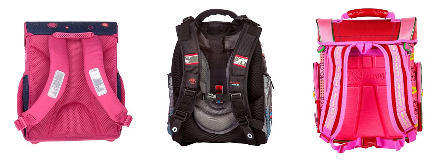 Оптимальным выбором для первоклассника является рюкзак с ортопедической спинкой, жесткими боковыми стенками и широкими лямками. Конструкция включает твердое основание, обшитое мягким материалом. Внешняя часть рюкзака должна быть из сетчатой ткани для хорошей вентиляции, иначе спина ребенка будет потеть, что создаст дискомфорт. Между жестким основанием и внешним материалом располагаются мягкие вставки для правильного прилегания и равномерного распределения нагрузки.