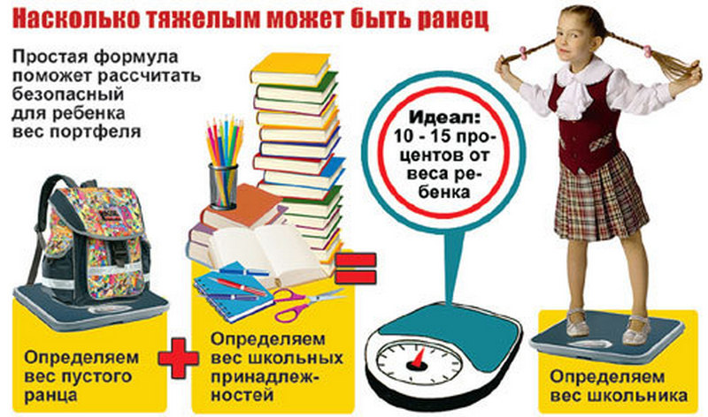 Ортопедические рекомендации указывают, что вес заполненного рюкзака не должен превышать одной десятой от массы тела ученика. Более тяжелая модель может негативно сказаться на здоровье позвоночника.