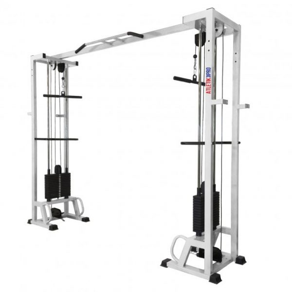 Модель МТБ-1 наиболее популярна для домашнего использования. Она включает металлическую одинарную стойку с креплениями, блочки, трос и груз. В нижней части конструкции расположены ручки для занятий на полу, а для упражнений в стоячем положении предусмотрен горизонтальный держатель. Компактные размеры (70 х 80 х 220 см) и вес 135 кг делают ее удобной для небольших помещений. Одинарные конструкции имеют раскосые и прямые ножки, которые можно закрепить на стене. Раскосые ножки обеспечивают большую устойчивость, а прямые — компактность.
