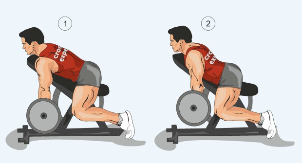 - Устройтесь на наклонной скамье так, чтобы голова находилась за верхним краем.