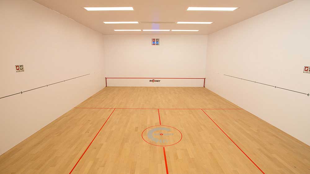 Идеальным покрытием для пола считается натертый паркет. Только деревянная поверхность может создать нужный амортизационный эффект и по максимуму снять давление с суставов игроков. Стены корта выполняются из сверхпрочного стекла. Даже приложив усилия, будет крайне сложно разбить его. При разбивании такое стекло рассыпается на мелкие части, что исключает возможность получить серьезное ранение. Еще одно преимущество стекла — болельщики могут наблюдать за матчем. Тренировочные корты могут быть непрозрачными.