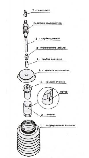 На первом занятии Самоздрав нужно собрать по инструкции, в упрощенном варианте, то есть, без внешних резервуаров. Крышку вставляют в стакан напротив цифры 1, трубку подсоединяют к специальному выступу, поверх надевают мундштук и компенсатор. Заниматься таким образом придется до 1,5 месяцев, затем используется полный комплект. Методика включает 3 основных момента: