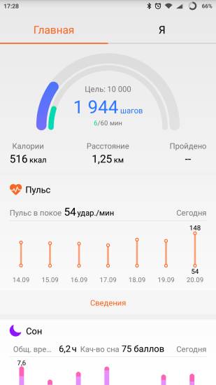 Количество шагов на экране браслета и смартфона могут незначительно различаться – программа может считывать шаги и с телефона. Различия при порядке шагов в тысячу составляет не более 100 единиц.