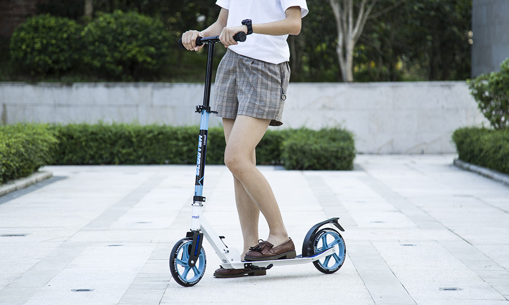 При выборе взрослого самоката нужно обратить внимание на колёса. Чем больше диаметр колёс – тем выше скорость и ниже маневренность. Чем колёса шире – тем выше устойчивость. На самокатах с большими, надувными колесами можно кататься не только в городе, но и по легкому бездорожью.