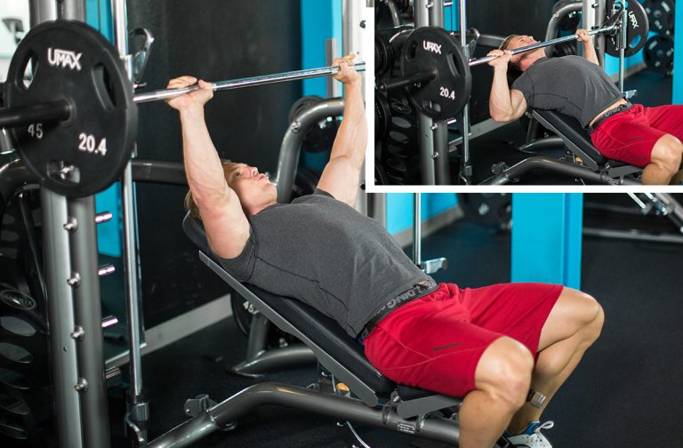 Во время жима в Смите на наклонной скамье важно опираться на ключевые точки — спину, ноги и ягодицы. Распространенная ошибка — отрыв таза от скамьи, что снижает эффективность и перегружает поясницу.