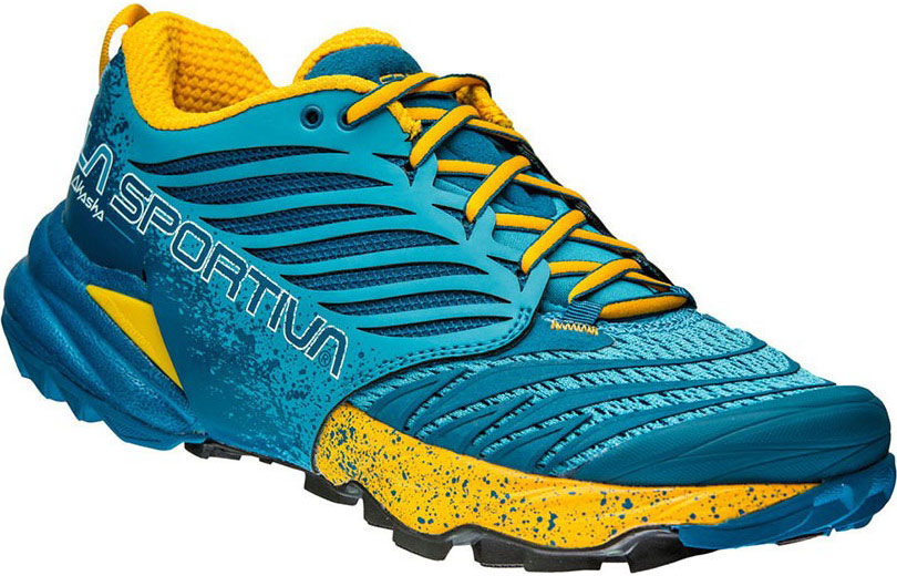 Для трейлраннинга. Обувь имеет жесткую подошву, немного сгибающуюся в области пальцев, и усиленный носок для защиты от ударов о камни. Плотный язычок с эластичной вставкой и металлические шипы обеспечивают сцепление на рыхлых покрытиях и снегу.