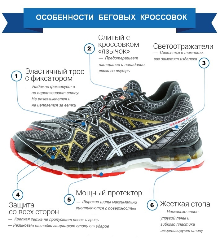 Беговые кроссовки, независимо от бренда и стоимости, должны выбираться с учетом следующих факторов: