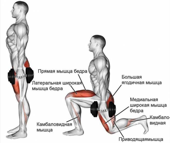 В движении максимально задействованы мускулатура бедра, ягодичные мышцы, приводящие мышцы (при широкой постановке ног), а также мышцы голени и кор.