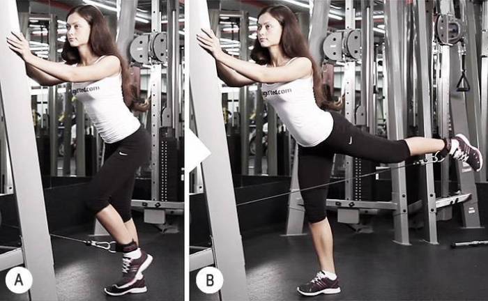 Тренировка ног и ягодиц для женщин: один тросовый тренажёр.