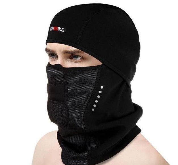 - Маска. Закрывает шею и нижнюю часть лица, может иметь отверстие для рта и обеспечивает плотное прилегание. Изготавливается из полиэстера и спандекса, иногда с флисом.