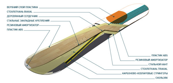 - Комбинация древесины, алюминиевого сплава и карбона. Это сочетание повышает жесткость доски без увеличения веса. На рынке представлены различные комбинации, и появляются новые модификации.