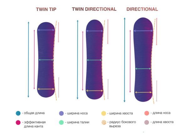 При выборе сноуборда учитываются не только антропометрические данные человека, но и конструкционные особенности доски. Выделяются следующие типы изделий: