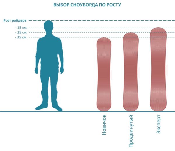 Рост влияет на выбор сноуборда. Рекомендуется отнять от роста спортсмена 15–20 см для новичков и 30 см для профессионалов. Фристайлеры могут уменьшить длину на 50 мм, а фрирайдеры, катающиеся вне трасс, могут добавить такое же количество.