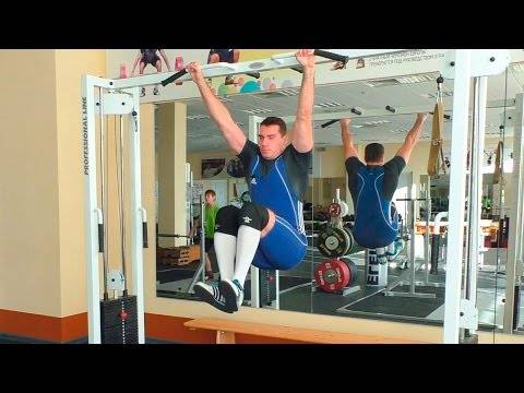 - Поднимаем ноги чуть выше уровня брусьев или до самой груди. Если поднимать ноги чуть выше параллели – в основном работает нижний пресс. Когда вы будете тянуть колени к груди, ваш таз начнет тянуться вслед за ногами. При этом нагрузка распределиться и на верхнюю часть пресса. Для удобства рекомендуем поднимать колени вместе с тазом до самой груди или подбородка.
