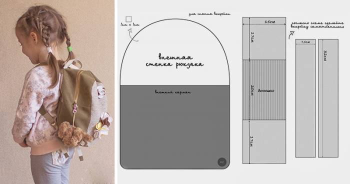 Характеристики выкройки зависят от модели. Наиболее популярные варианты — детские рюкзаки, сделанные своими руками: мешок, сумка из ненужных джинсов и изделие в технике пэчворк.