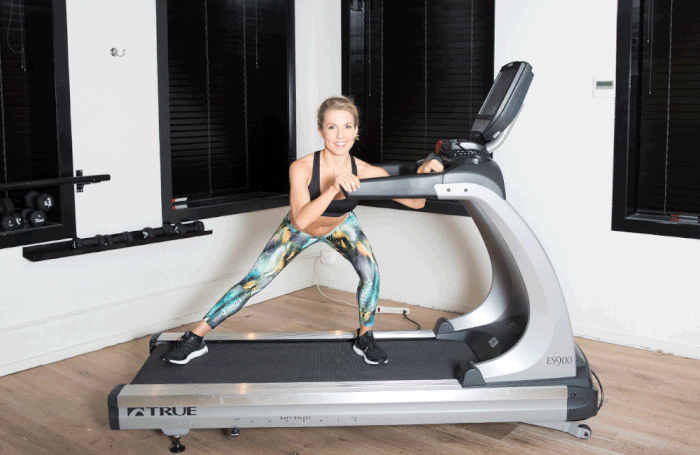 - Пробежаться на дорожке, высоко поднимая колени и делая вынос бедра. Достаточно всего 3–5 минут.