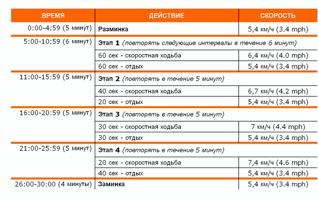 - Начните с пяти минут спокойной ходьбы.