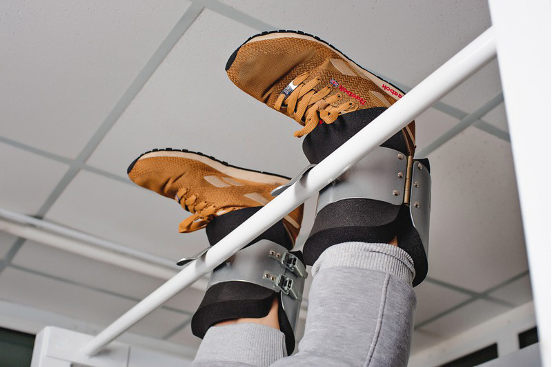 Гравитационные ботинки разработаны именно для этой цели. Подвешивание в перевёрнутом положении, также известное как инверсионная терапия, способствует восстановлению позвоночника и других суставов. По сути, вы используете собственный вес для растяжки и расслабления мышц от лодыжек до головы.
