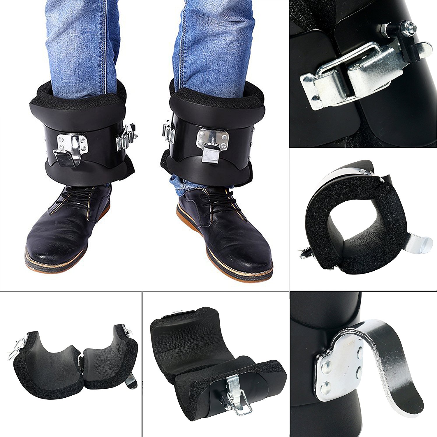 Гравитационные ботинки — это тренажер, позволяющий висеть вниз головой на перекладине. Поэтому их также называют инверсионными ботинками, поскольку они полностью переворачивают тело. Как видите, они похожи на мягкие кандалы для ног, которые надеваются на лодыжки.