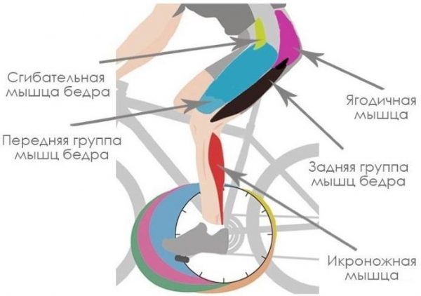 При занятиях на велотренажере активно задействуются следующие группы мышц: