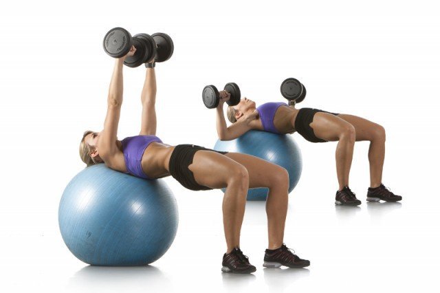 Жим на фитболе со снарядами минимальной массы при условии хорошего самочувствия и отсутствия болевых ощущений показан даже при беременности и в период посттравматической реабилитации.