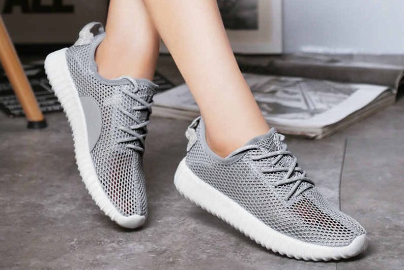 Сдержанные образы можно создать, сочетая серый с черным или белым. Романтичный наряд дополнит обувь в голубых или розовых тонах. Среди женских моделей популярны кроссовки с металлическим оттенком.