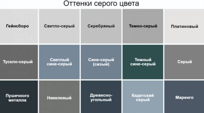 Серая палитра отличается сдержанностью и разнообразием оттенков. Популярные тона не мрачные и однообразные, а выглядят благородно и стильно. Светлые, пастельные, дымчатые, голубоватые и пепельные оттенки идеально подходят для оригинальных образов. Стальной, темно-серый и графитовый цвета широко применяются в повседневной жизни.