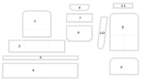 Чтобы разобраться, как сшить рюкзак самостоятельно, работу нужно делать последовательно, не спешить. Все детали должны быть выкроены, перенесены на материал и вырезаны с учетом припусков. Пошаговая инструкция выглядит так: