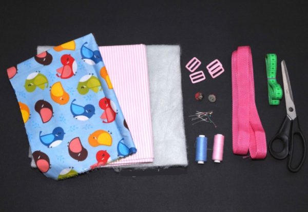 Для пошива детского рюкзака лучше взять хлопковую ткань. Для девочки подойдет розовая или красная, можно с рисунком. Также понадобятся такие материалы и инструменты: