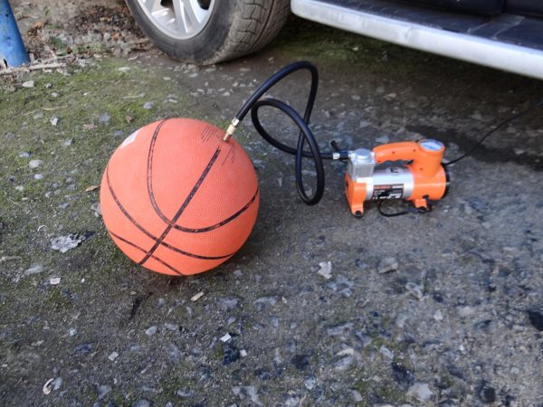 В любой машине катается компрессор для подкачки автомобильных шин. Обычно в комплекте нет специальной иглы для мячей, но подойдет любая насадка с тонким носиком. Фокус в том, что компрессор выпускает воздух под мощным давлением, поэтому достаточно сильно прижать кончик насадки к ниппелю игрового снаряда.