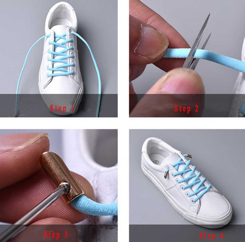 Пользоваться антишнурками просто — достаточно каждый элемент комплекта поочередно вставить в отверстия обуви. Можно делать это прямым или перекрестным способом.